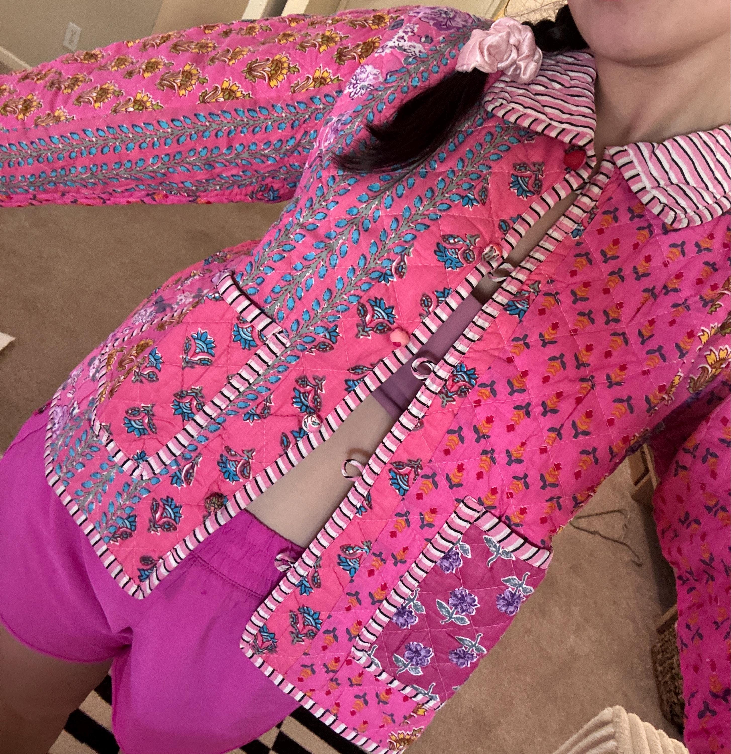 Indian Handmade Patchwork Cotton Quilted Jacket, Vintage Pink New Style Cotton Quilted Jacket, Reversible Women's Boho Coat, Gift for Her