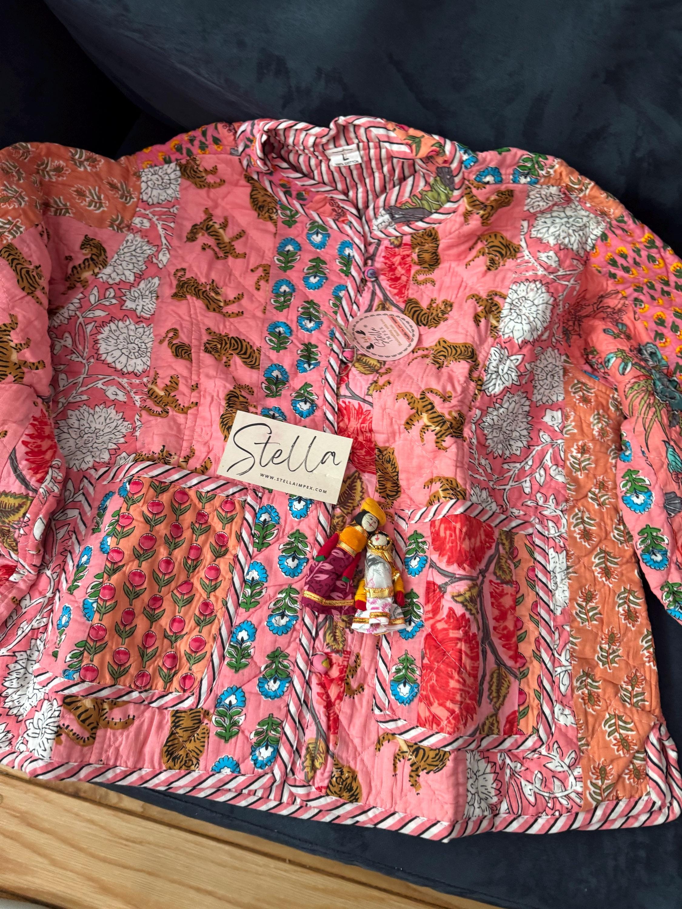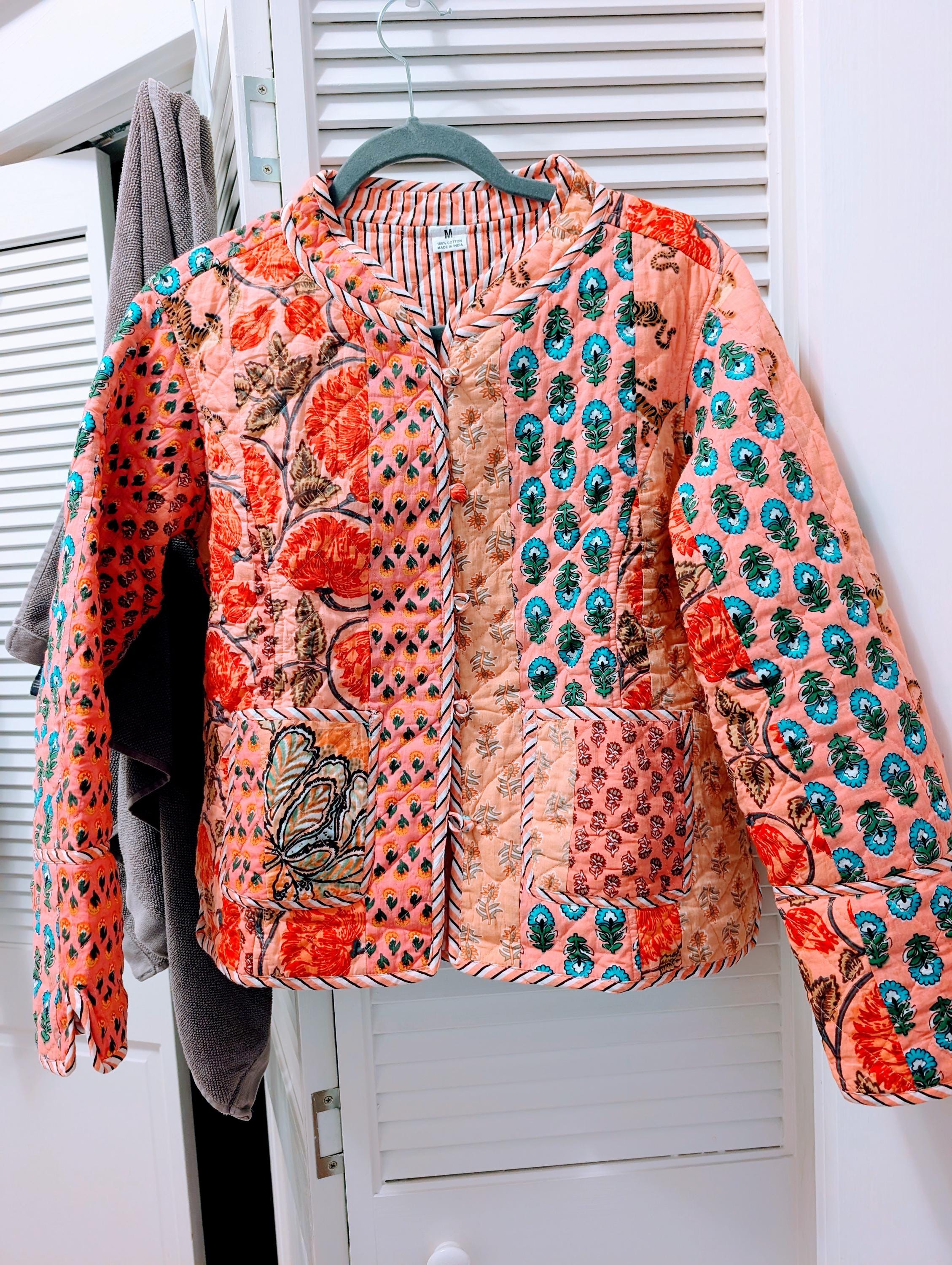 Handmade Peach Patchwork Quilted Jacket for Women – 100% Cotton, Boho Style