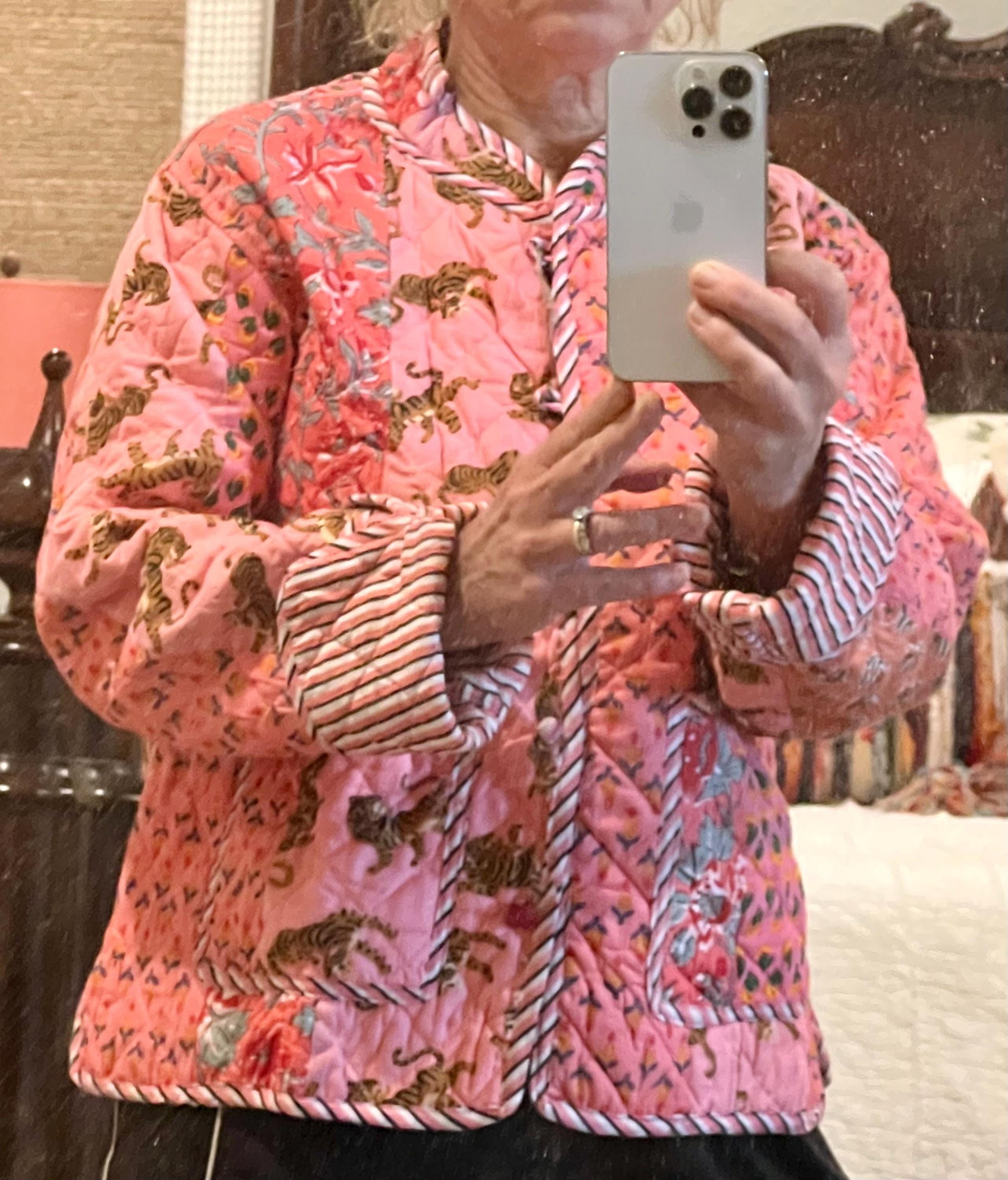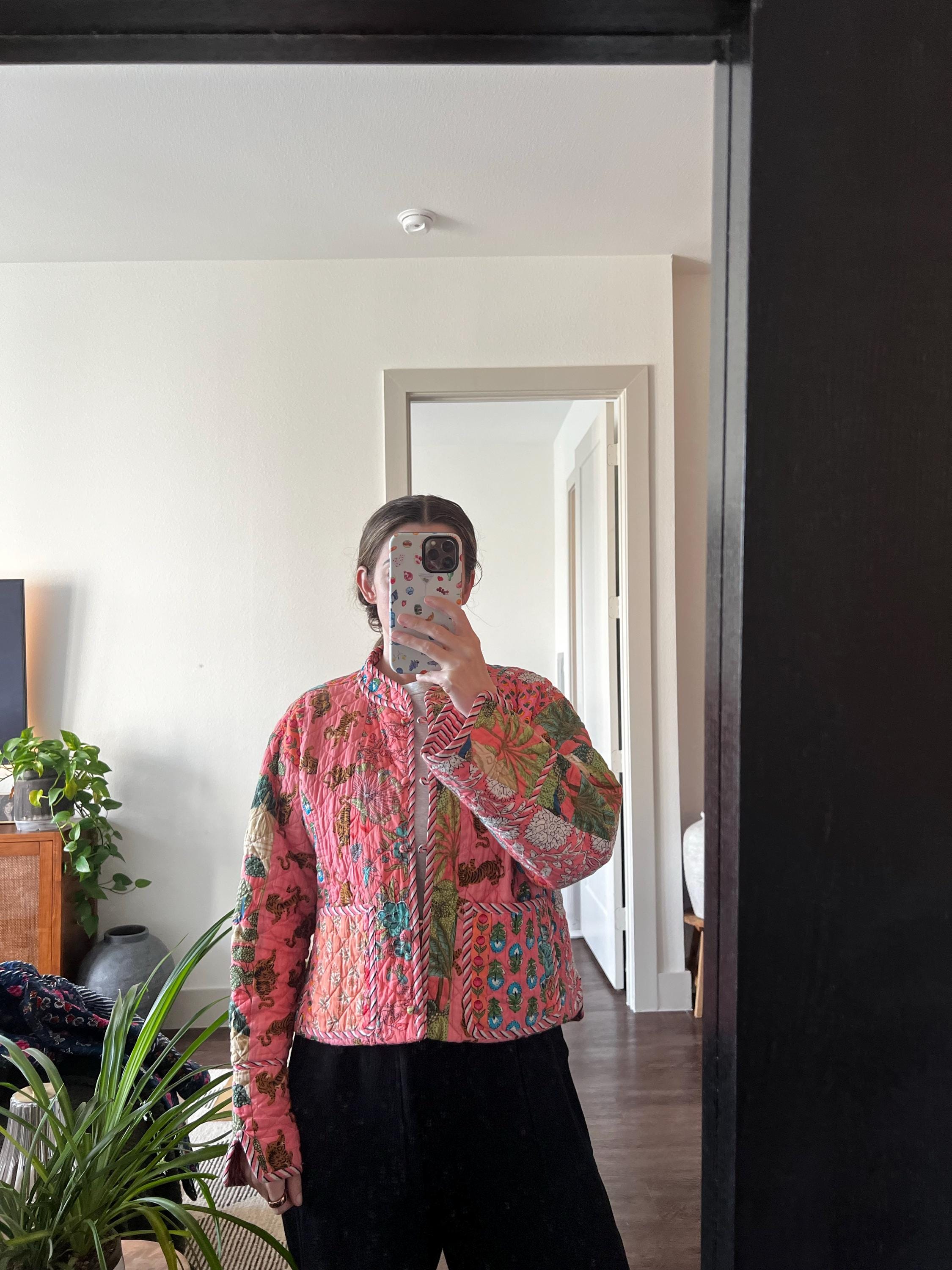 Cara FarquharI Love this quilted jacket! The color and printed fabrics are lovely and it makes a fantastic piece to layer. Beautiful, unique... Read MoreI Love this quilted jacket! The color and printed fabrics are lovely and it makes a fantastic piece to layer. Beautiful, unique and stylish! HidePosted on -